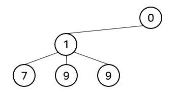 9 1 / 9 7 / 9 9 를 모두 출력하고 더이상 탐색할 것이 없어 root인 0으로 돌아왔을 때 직전에 탐색한 노드는 root 바로 아래의 9이다.